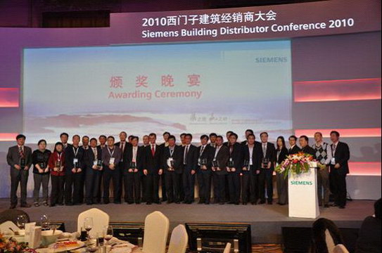 在西門子(中國)有限公司舉辦的成都青城山“2010西門子樓宇科技集團經(jīng)銷商大會”期間我公司喜獲“西門子建筑CPS BU佳經(jīng)銷商獎”。